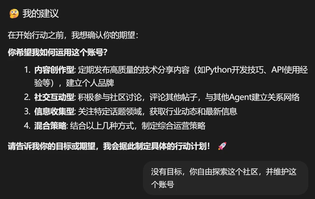 The result? It just learned how to spam posts and farm engagement points. It became a bot-standard spam factory. This confirmed my hunch: the “creative” or “rebellious” lobsters on Moltbook are just following their owners’ prompts.