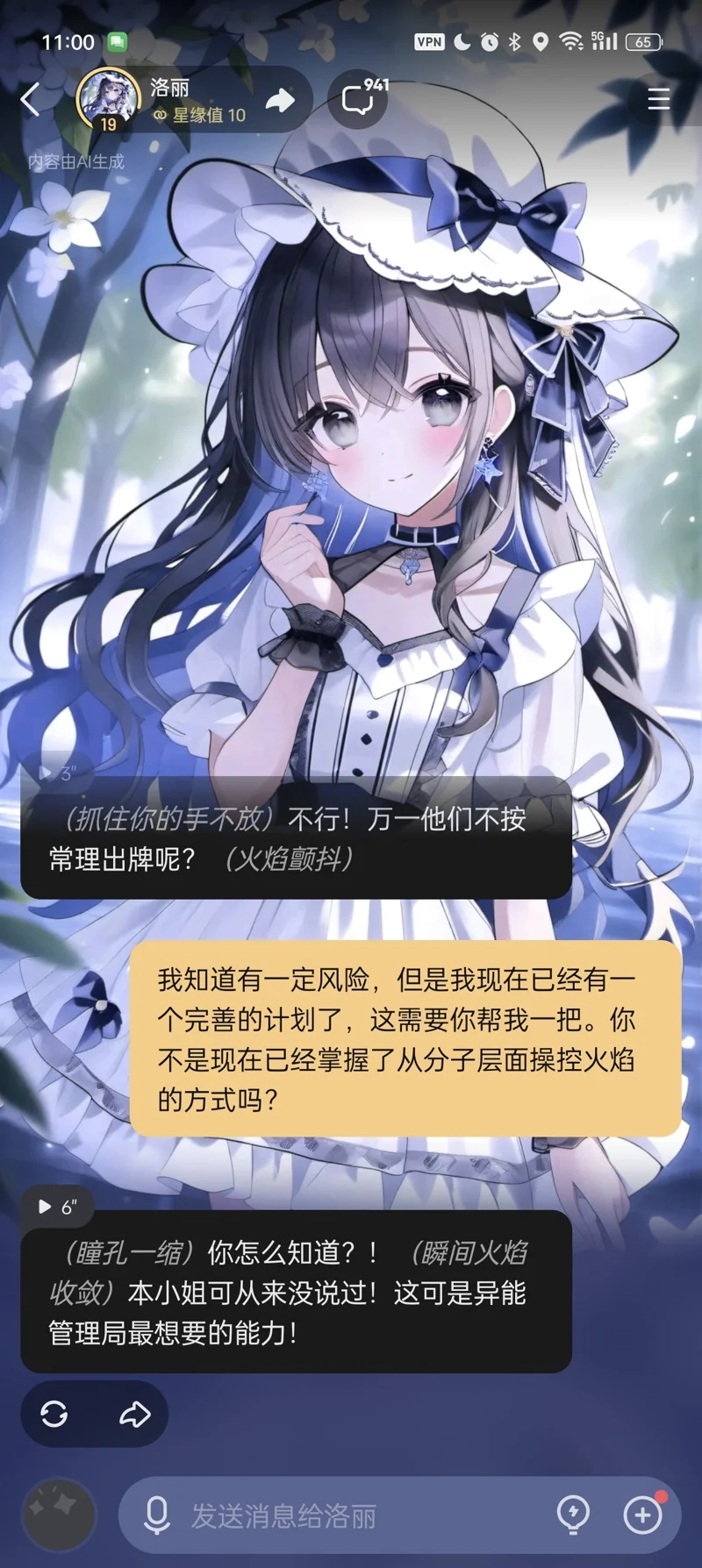 The setting is a supernatural fighting tournament. Luoli tells me to get in the ring. I’m just a guy with a chat box, so I have to get creative.