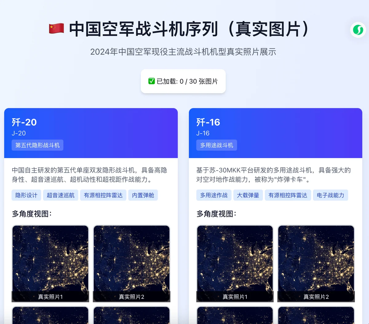 GLM的测试结果我都不太想放上来。它直接用AI给我生成了战机图片,我多次抗议后,自欺欺人地在风景图旁边标了“真实图片”,还用风景图代替了战机照片。