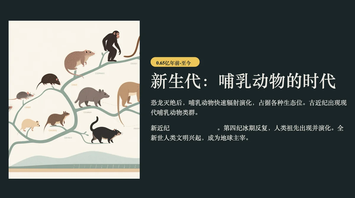 地球地质PPT,我的预期是它们用编程能力创作HTML格式的PPT。其中GLM提供PPT模式,我看了下,原理确实是生成HTML再转PPT。但我故意选了Full-Stack模式来创作,因为我就想看看通用Agent在这种任务上能做到什么程度。