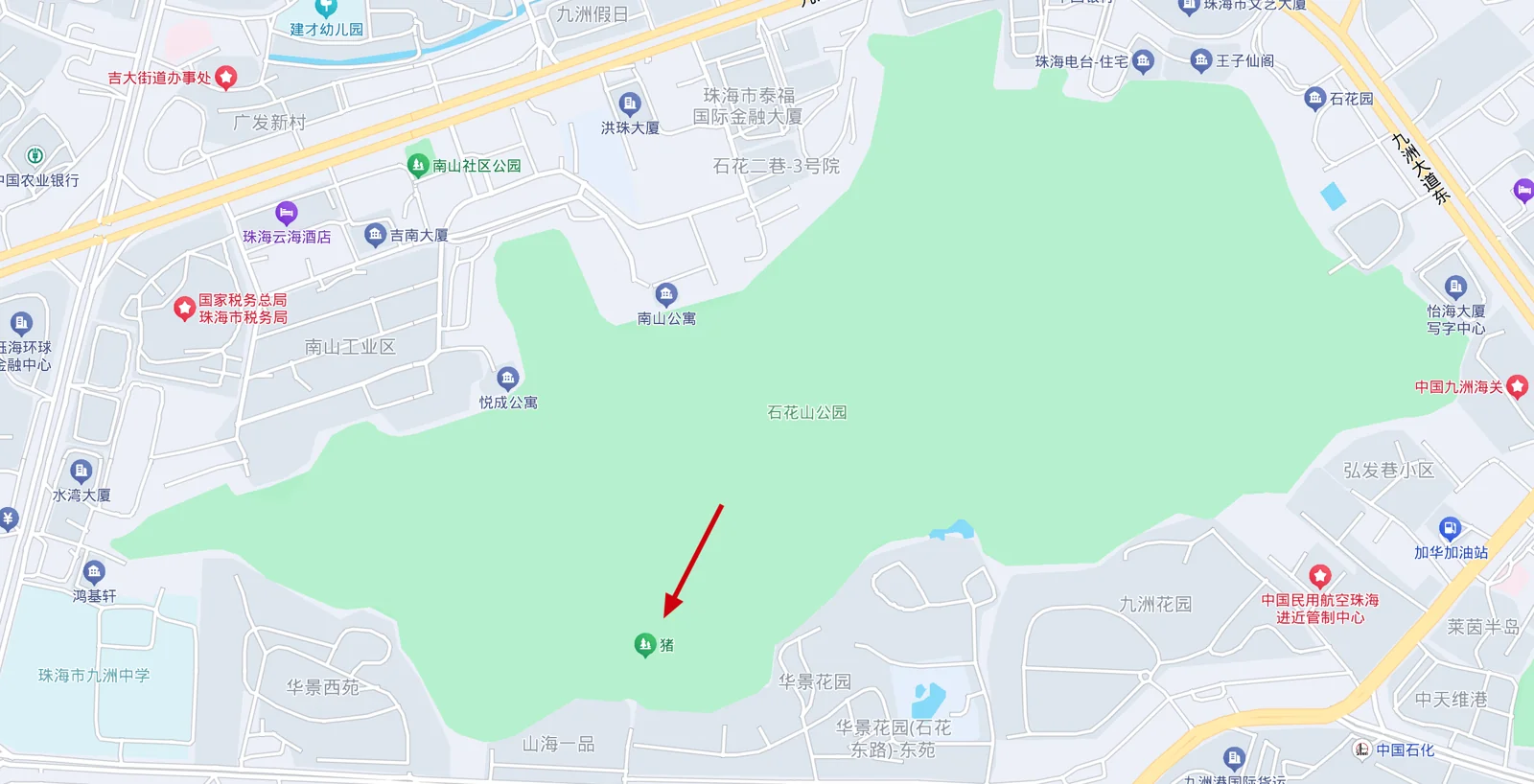 最后,百度地图有点好笑,它在告诉我,珠海这个公园什么玩的也没有,来这就看一头猪。